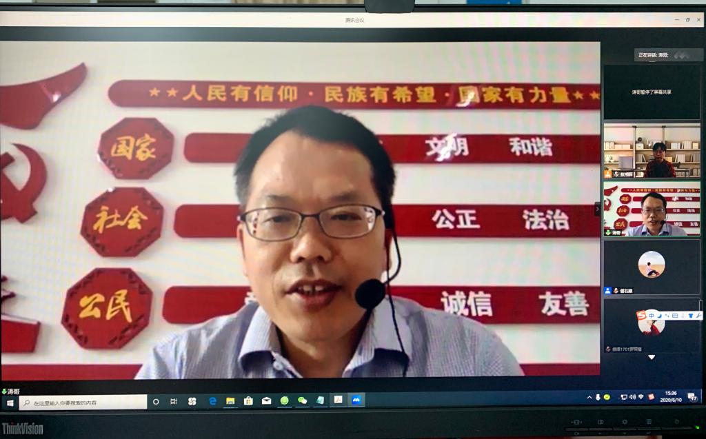 党委常委、宣传部部长、思政宣讲团成员胡文涛教授作主题为“我国疫情防控中的舆情演变与国际舆论斗争”专题报告。学院全体教职员工,学生党团干部,入党积极分子和发展对象共120余人参加宣讲会。宣讲会由学院党委书记敖湘晖主持。