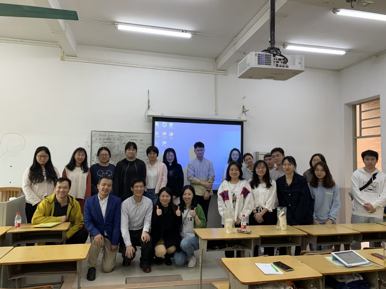 研究生带来了题为“德语语言学论文选题与研究设计”的精彩讲座,德语系硕士研究生参加了此次讲座,崔涛涛博士主持了本次语言学讲座,监考完德语专业四级考试的杜卫华老师参加了最后的讨论。