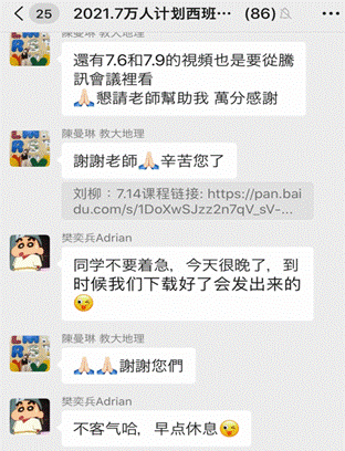 课上,教师与三地同学间交流频繁,互动热烈。课后,同学们也通过班级微信群等方式对语言学习的方法和技巧交流心得体会。同学们对此次线上课程的满意度较高,感言不仅学习语言基础,还拓宽国际视野,增强跨文化交际的能力,而且结交友谊。