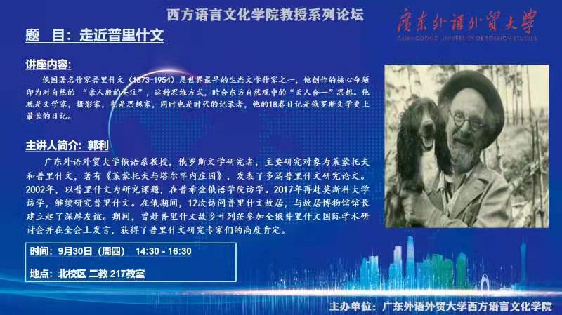 俄语系郭利教授带来题为《走近普里什文》的专题讲座。讲座由副院长杜卫华和研究生办公室主任臧宇主持,浪live