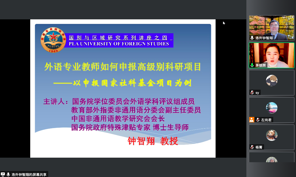 西方语言文学院举办了第二场高层次项目申报指导会,特邀国务院学位委员会外语学科评议组成员、教育部外指委非通用语分委会副主任委员、中国非通用语教学研究会会长、中国人民解放军信息工程大学洛阳校区博士生导师钟智翔教授为浪live