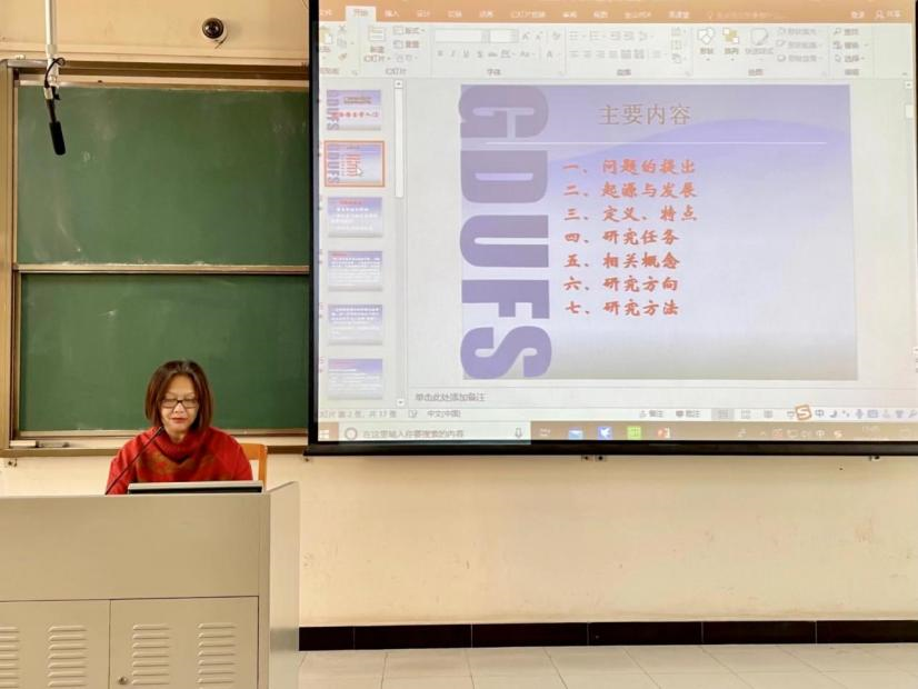 随后,杨可教授带着同学们了解了政治语言学的研究方法、研究任务。政治语言学的研究方法借鉴了许多相关人文社科的研究方法,随着科技的发展也采用了如大数据之类的新型方法。论坛最后,杨可教授介绍了她的团队近十余年来在政治语言学研究方面的成果。