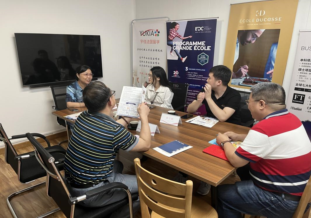 接着,敖湘晖书记带队前往校友企业宇佳教育公司。座谈会上,85级法语校友项晓光和03级法语校友李翠玉详细介绍了公司的特色留学项目,敖湘晖书记介绍了当前学院特色学科建设、人才培养体系和毕业生就业形势,就人才供需对接、拓展实习岗位、平台搭建等进行了交流。