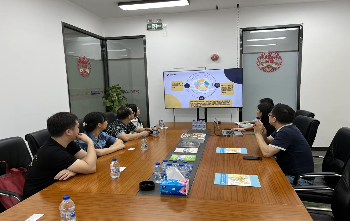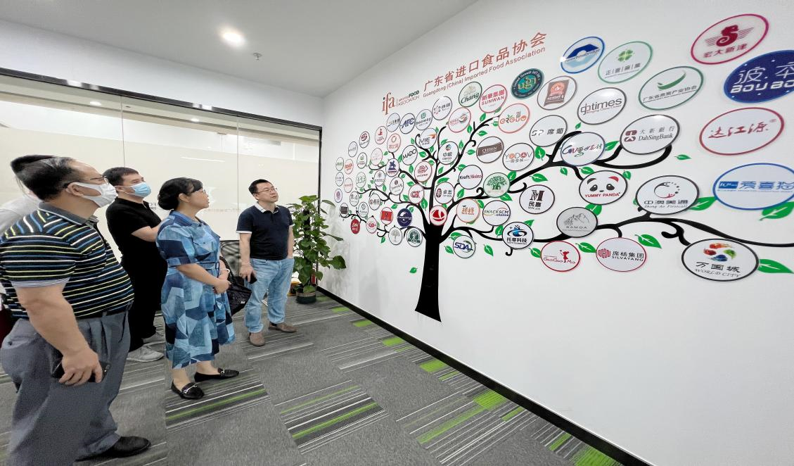 91级德语校友綦宜龙带领一行人实地参观了广东省进口食品协会的工作环境,在座谈会上,作为广东省进口食品协会会长綦宜龙详细介绍了公司的发展历程、特色活动和对小语种毕业生的需求,敖湘晖书记则表示围绕就业资源共享、特色活动合作和实习推荐等加强双方的互动合作。