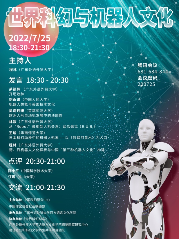 本网讯 2022年7月25日晚,“世界科幻与机器人文化”沙龙在线上举办。本次沙龙由中国科幻研究中心和中国作家协会社会联络部主办,浪live