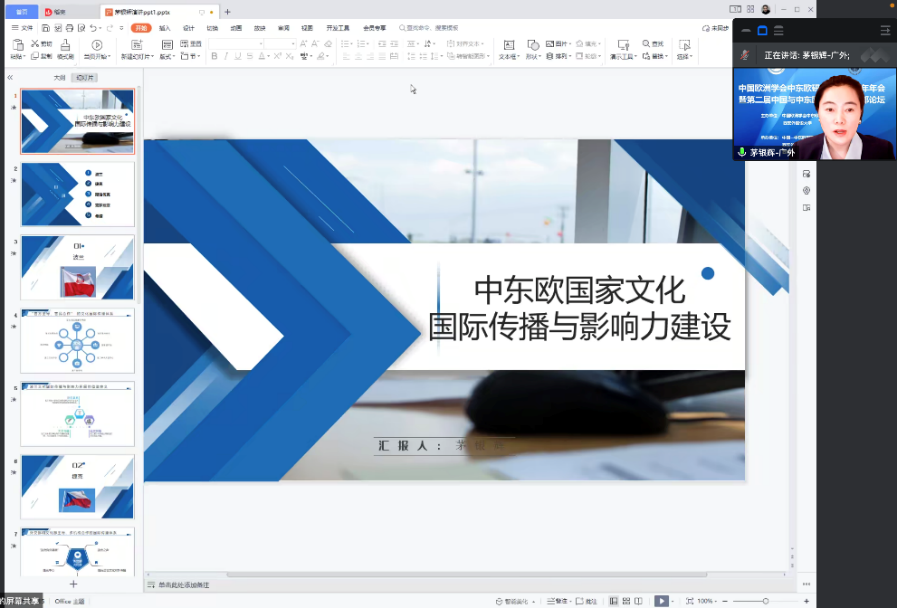 茅银辉教授围绕“中东欧国家文化国际传播与影响力建设” 做主题发言。发言分析了中东欧国家在国际文化传播与推广方面的特点,总结了中东欧各国将文化纳入到对外传播的推介范围,对各自的文化传统与文化资源进行整合、创新与转化的经验。对中东欧国家文化国际传播与影响力建设的研究有助于我国找准文化传播的定位与策略,为中国文化走出去,传统文化对外传播路径的开拓提供了重要的借鉴意义。