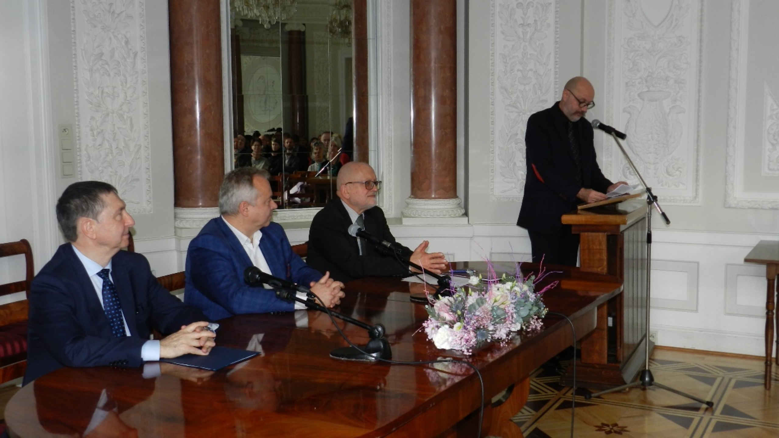颁奖仪式于11月21日中午12时在华沙大学提施凯维奇-波托茨基宫(Pałac Tyszkiewiczów-Potockich)内隆重举行。华沙大学副校长桑博尔·格鲁查教授(prof. dr hab. Sambor Grucza),波兰语言文化学院院长兹比格涅夫·格伦教授(prof. dr hab. Zbigniew Greń),华大对外波兰语教学中心主任格列戈什·莱什钦斯基教授(prof. dr hab. Grzegorz Leszczyński),波兰文化、教育界知名专家和学者等出席了本次仪式。