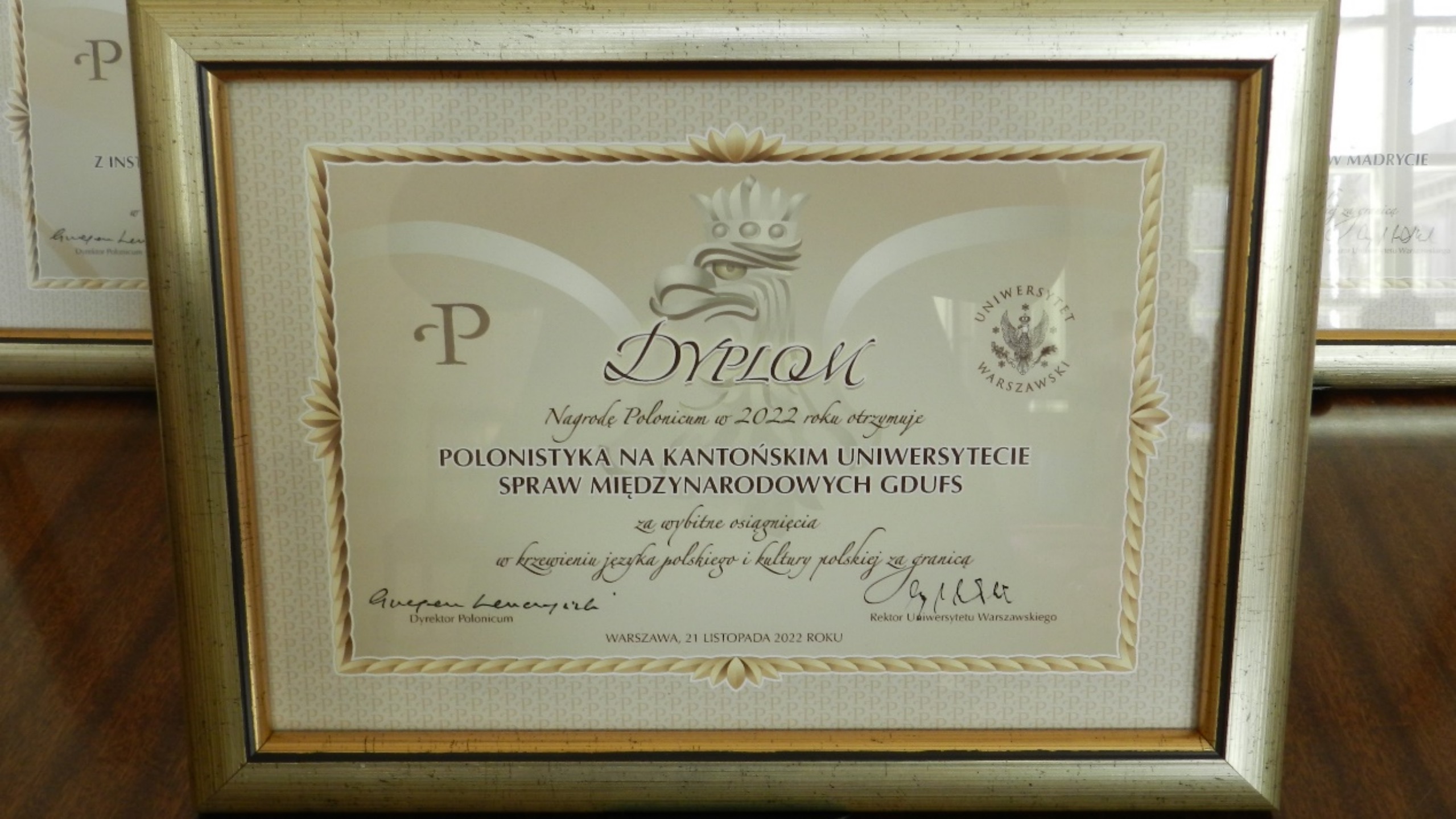 波兰语专业颁发了“2022年度波兰语言文化国际传播奖”(下称“POLONICUM奖”)。该奖项由波兰顶尖名校华沙大学设立,旨在表彰在世界范围内对波兰语言、文学、历史和文化的传播产生杰出贡献的单位及个人。该奖项规格极高,评审委员会成员包括华沙大学校长、波兰共和国参议院议长、波兰文化和国家遗产部部长、波兰高等教育部部长等。