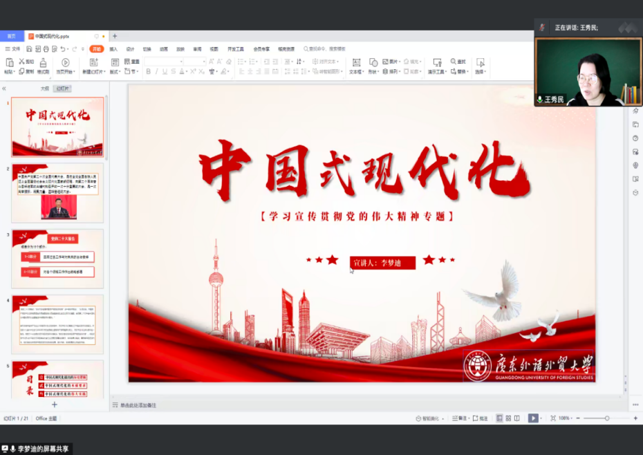 李梦迪围绕“中国式现代化”主题,从中国式现代化提出的历史逻辑、中国式现代化的本质要求、中国式现代化的伟大实践三个方面进行了深刻阐述和详细解读。