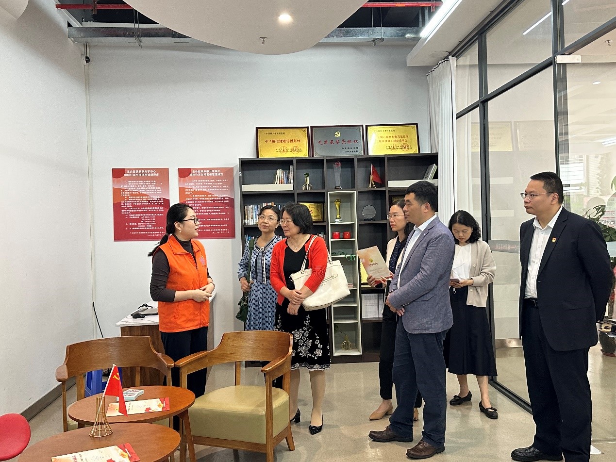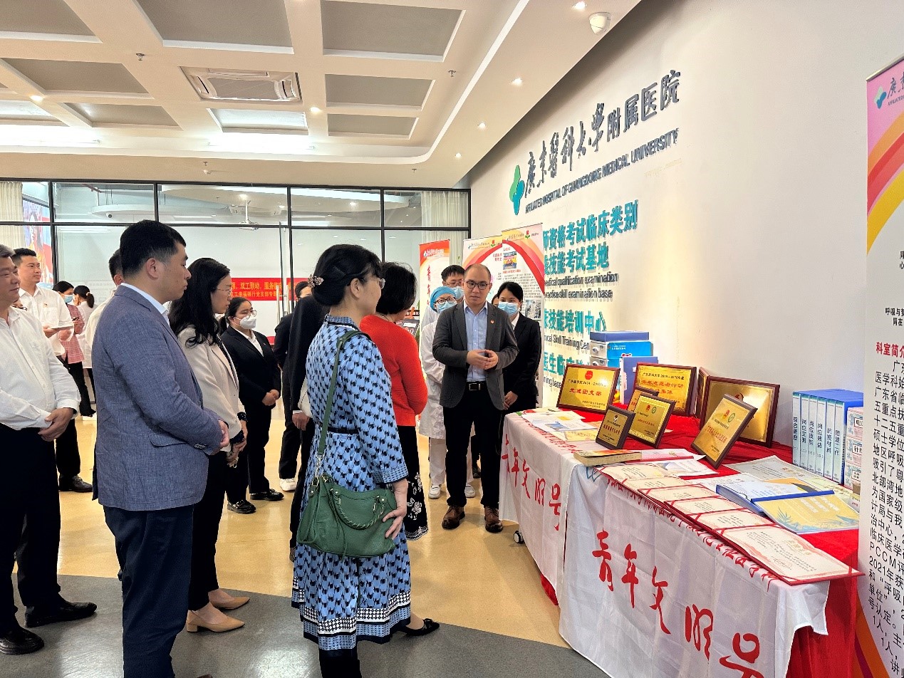 还到广东医附属医院参观学习,听取医院党委书记李明意、团委书记莫源源关于附属医院党建工作、青年工作经验介绍,听取全国全省首批党建“双创”样板党支部、义工幸福银行党支部关于支部的核心运营理念和创新做法。