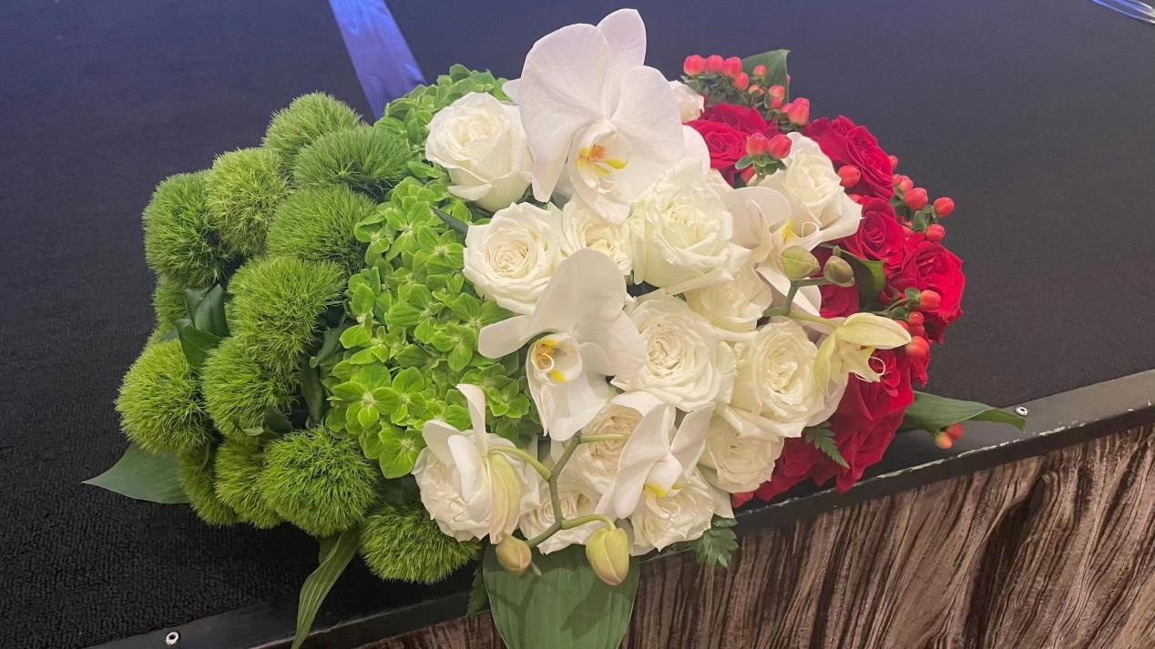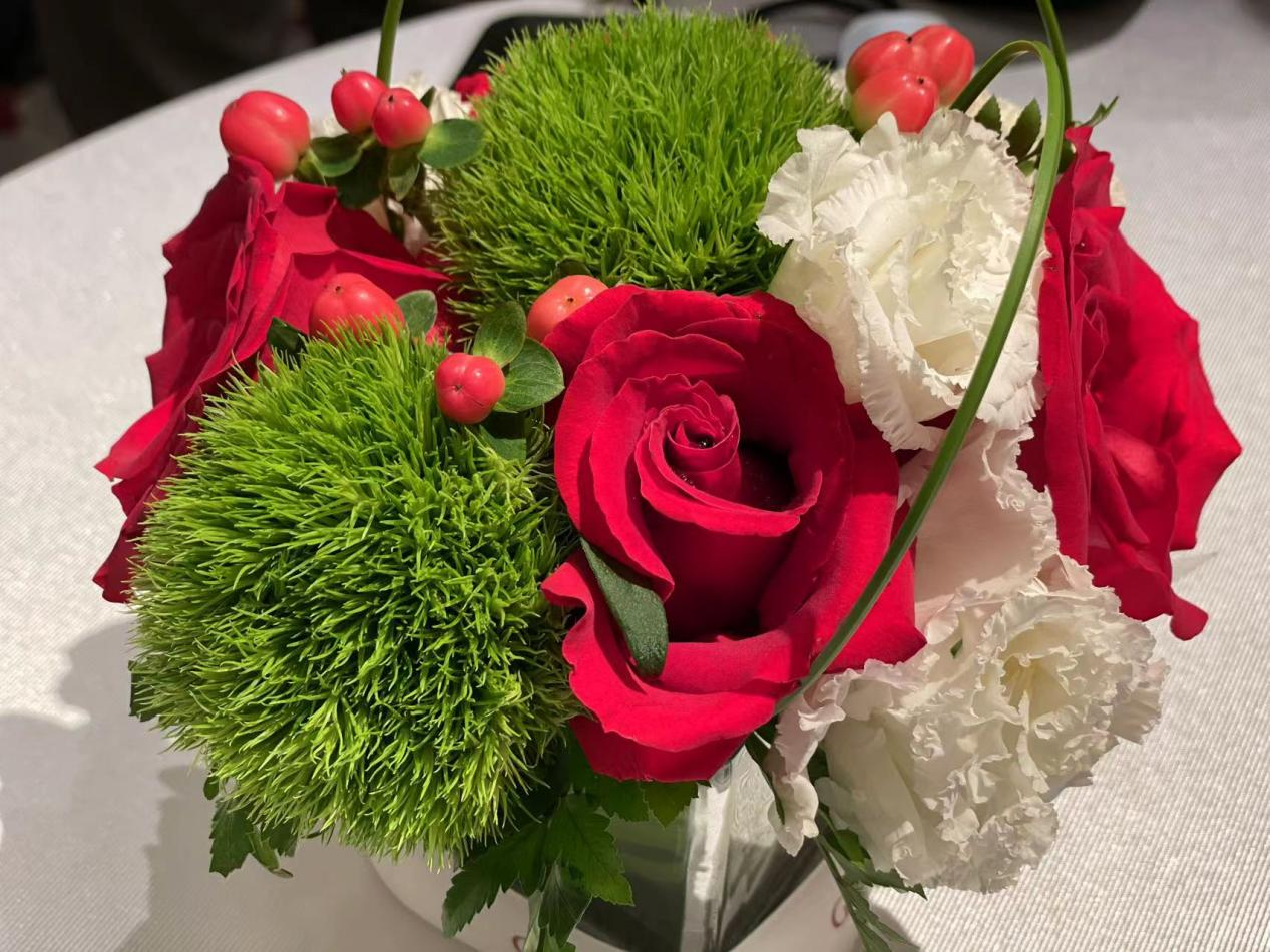 晚宴上摆放着象征意大利国旗的三色鲜花