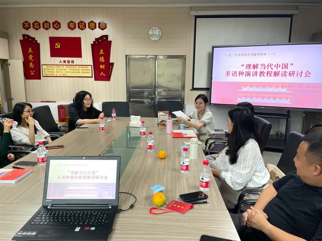 思政教学质量,2023年10月19日下午,“理解当代中国”多语种演讲教程解读研讨会在学院会议室举行,来自法语、德语、西班牙语、意大利语和葡萄牙语系的教师参加了本次会议。