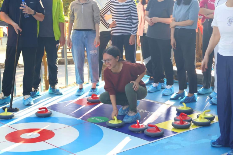 冰壶的对垒,是体力的对抗,也是智慧的博弈,将活动气氛推向高潮。定好姿势,手推冰壶,一次次巧妙的配合,一次次精准的得分,一次次激动人心的反转……老师们全身心投入,赛出了风采,喊出了快乐。