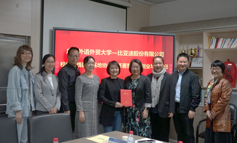 的发展,作为一名广外人更是倍感骄傲和自豪。她也介绍了比亚迪的发展历史和产业分布,并表示比亚迪正在推进“出海战略”,急需外语人才,加强校企合作正当时。