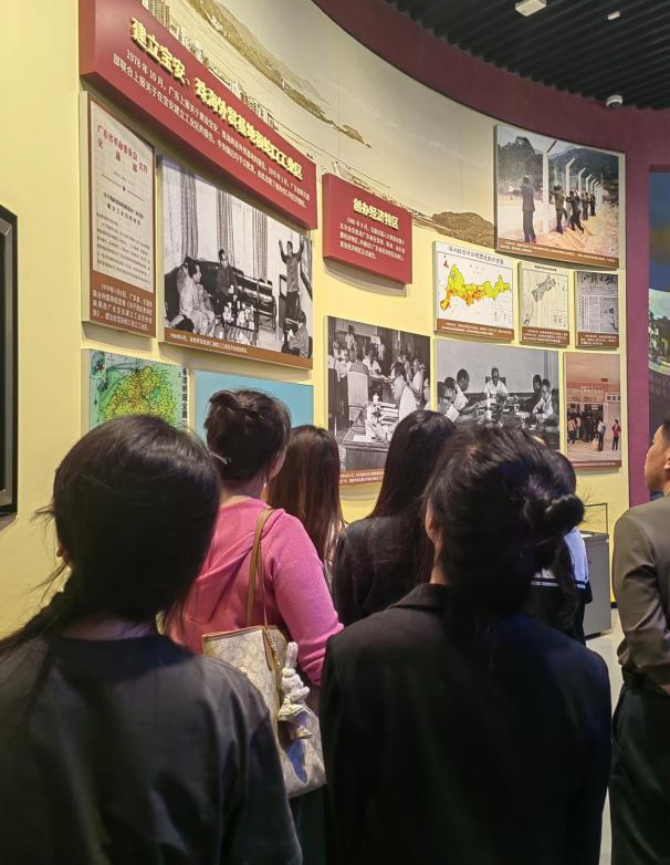 广东作为改革开放的排头兵、先行地、实验区,以日新月异的发展进程记录着改革开放的步伐。在“大潮起珠江——广东改革开放40周年展览馆”展厅,在讲解员的带领下,师生党员通过“敢为人先,勇立潮头”“增创优势,砥砺前行”“走在前列,当好窗口”三个部分深入了解改革开放四十年以来在中国共产党带领下广东省做出的不断努力和尝试。“时间就是金钱,效率就是生命”这句标语深深地镌刻在改革开放历程中,建设科技创新强省、实施乡村振兴、建设粤港澳大湾区等发展规划及实干经验不断推进广东改革开放持续发展,让大家深刻体会到改革开放给人民生活带来的翻天覆地的变化。在“深圳城市规划展”展厅,师生通过参观“城市共生”“城市共建”“城市共想”三个主题,了解深圳经济特区的建设史,感受这座城市的风貌与风骨,历史现在与未来。