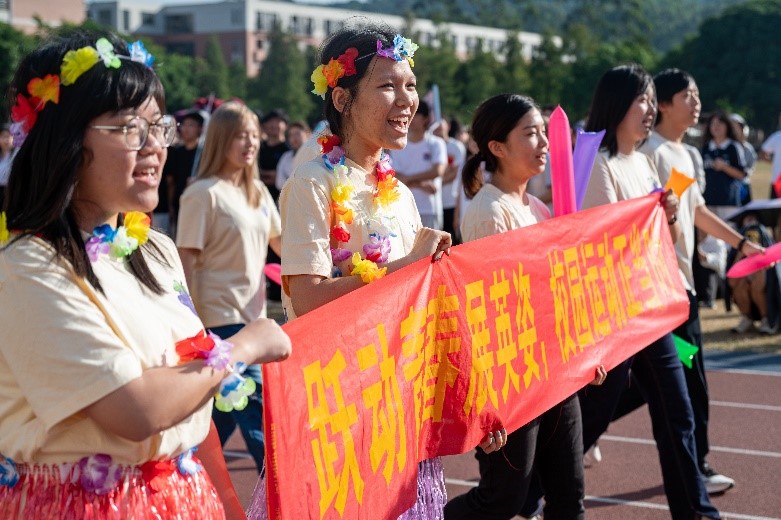上午8点,院运会开幕式正式开始,伴随着激昂的运动员进行曲,国旗队、院旗队、2023级、2024级各班级方阵迈着整齐的步伐依次通过主席台,他们响亮的口号和富有创意的表演赢来阵阵热烈的掌声。