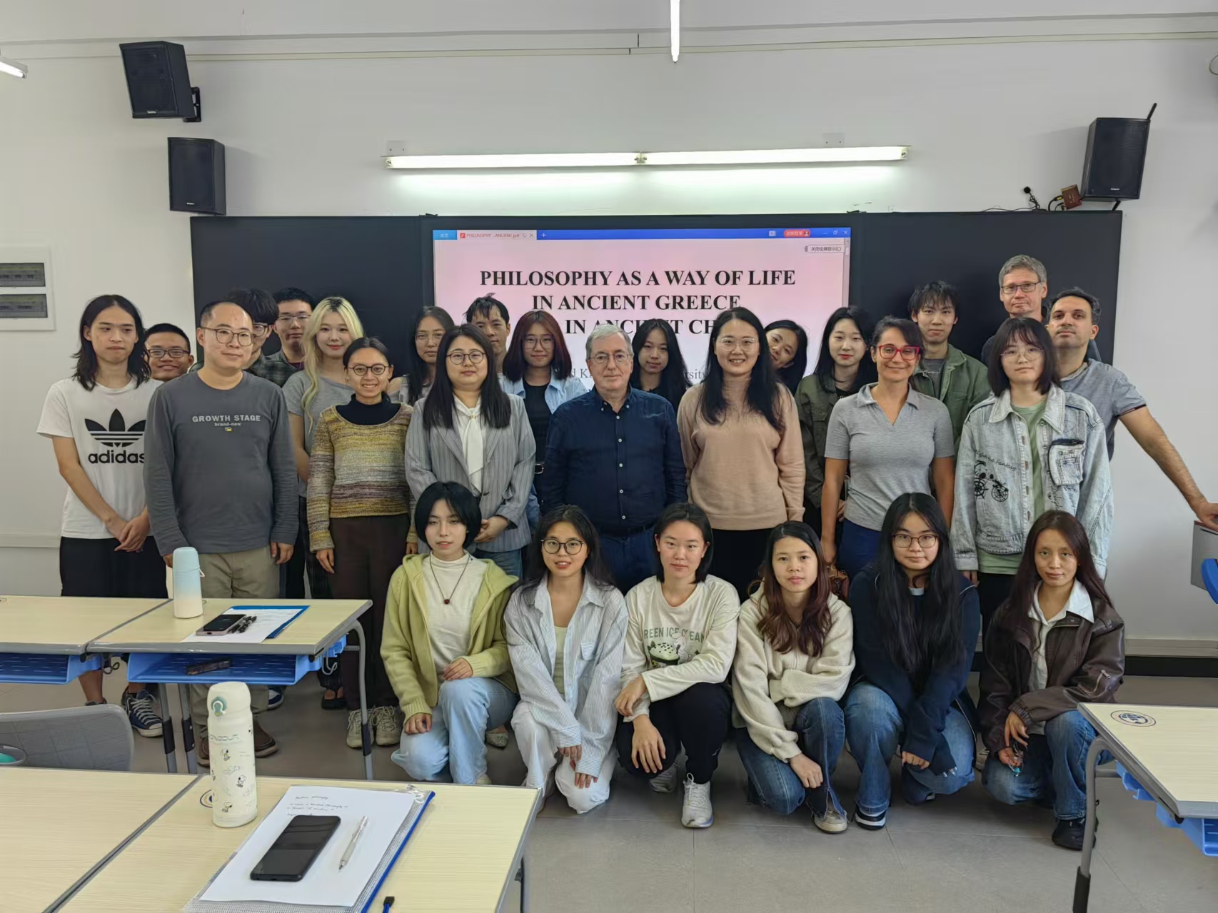 11月21日至28日,维尔维达基斯以深厚的学术功底和独特的视角,为广外师生们带来了五场精彩绝伦的讲座,内容涵盖希腊哲学研究中作为一种生活方式的哲学观念、现当代希腊对古希腊哲学的接受和运用、当代希腊诗歌中的希腊哲学遗产(卡瓦菲斯、塞弗里斯和埃利蒂斯)等。