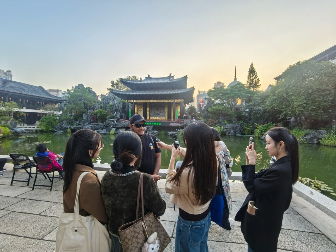 西班牙语语言文学硕士研究生刘敏菁和李晨曦全程参与翻译工作,准确且富有表达力地将记者的每一个问题传递给参访嘉宾,并将嘉宾的回答清晰传达给记者。无论是在参访永庆坊、粤剧艺术博物馆,还是在参观黄茅海跨海通道和深中通道的过程中,她们始终发挥着重要的桥梁作用,为记者们提供了高水平的翻译支持。