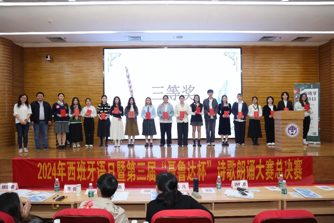 “活动育人”的教育理念,突出了西班牙语系雄厚的师资力量和完善的人才培养体系。同时,她还强调了诗歌在语言学习与文化交流中的重要性,鼓励学生们通过比赛深刻体验诗歌的魅力,进而提升自己的语言感知能力。