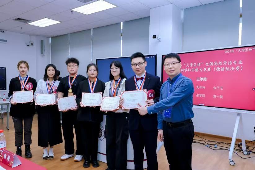 本网讯 2024年11月,“大湾区杯”全国高校德语专业区域国别学知识竞赛在深圳大学举行。本次比赛由深圳大学外国语学院、深圳技术大学外国语学院共同主办,德语系刘宇轩同学在黄羽欢副教授指导下获得全国三等奖。