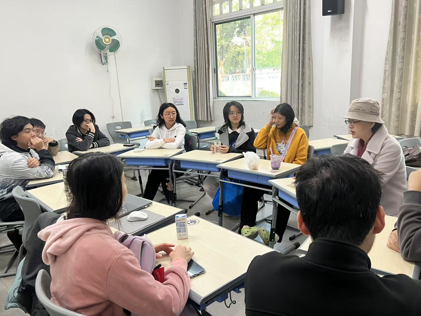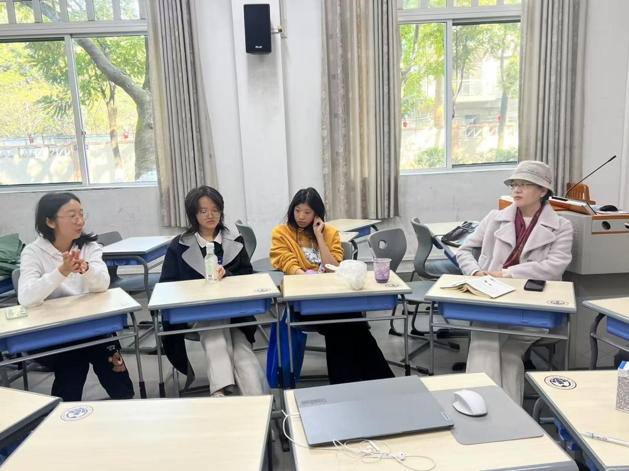随后,余杨教授诚恳征求同学们对课程的意见和建议,以进一步提升教学质量。她坦言希望课程能够更好地契合同学们的需求和期待,助力学术成长。学生们也踊跃发言,对余教授的教学方法表达高度认可,并分享了丰富的学习感悟。整个交流过程洋溢着思想碰撞的火花和融洽的师生情谊。