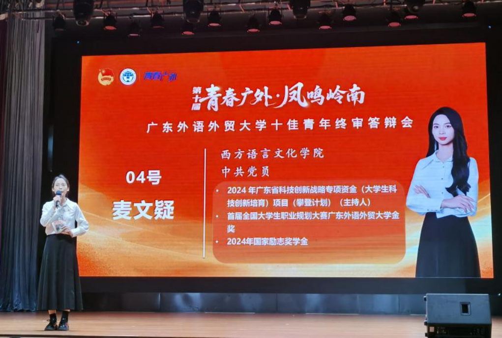 第十届“青春广外·凤鸣岭南”十佳青年终审评选活动在大学城校区B8报告厅举行。经前期学院推荐、材料初审、终审答辩,浪live