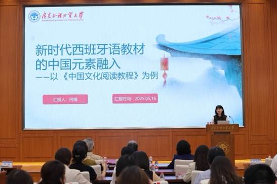 何嫣副教授作了一场题为“新时代西班牙语教学的中国元素融入——以《中国文化阅读教程》为例”的报告。她介绍了教材的编写背景、结构设计与教学实践,强调在“教师主导、学生主体”理念的基础上,通过真实任务驱动教学,激发学生内在潜能。该教材融合“理解世界,讲述中国”的理念,模块设计清晰,内容从多个维度展现中国文化,有效提升了学生的语言运用与跨文化传播能力。