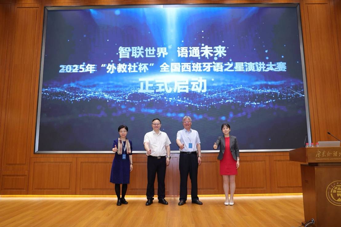 “智联世界,语通未来”——2025年“外教社杯”全国西班牙语之星演讲大赛启动仪式顺利举行。仪式由上海外语教育出版社多语种事业部副主任许一飞主持。大赛旨在激励广大青年学子运用西班牙语讲述中国故事,有力提升其跨文化表达能力。
