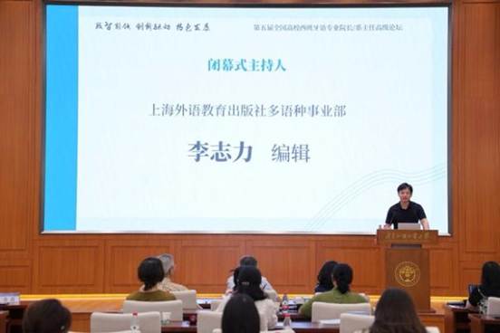 副院长陈星教授和外教社多语种事业部李志力编辑的主持下拉开帷幕。各分论坛主持人对本场研讨进行总结发言,充分肯定了此次论坛在提升专业建设水平、促进校际交流合作等方面的重要意义。