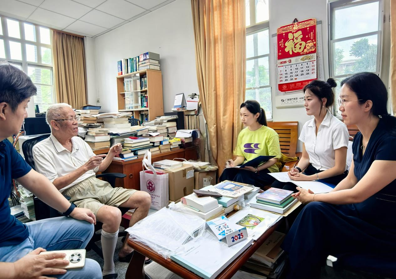 党委副书记魏少娟带队,法语系系主任叶剑如、学院团委书记冯迪南及法语系大一、大二学生代表一行,专程前往广外原校长黄建华教授的办公室。师生们怀着崇敬之心,代表全院师生向黄校长及其夫人余秀梅老师致以教师节最诚挚的祝福与亲切问候。这场跨越代际的会面,不仅是对老一辈广外人深耕教育、坚守初心的致敬,更让青年师生得以近距离聆听前辈关于语言学习、学术探索的宝贵经验,汲取砥砺前行的精神力量。