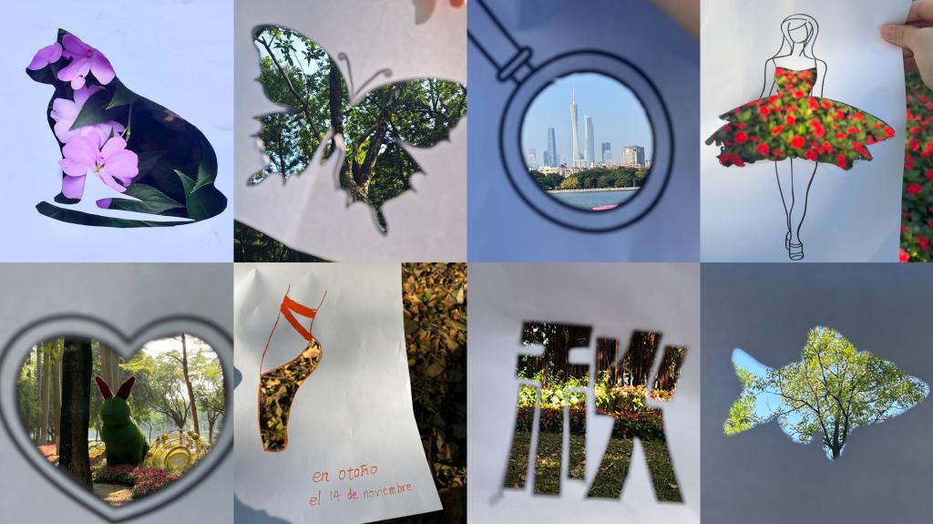 二级心理辅导站负责老师倪娉婷为师生们下发画纸、剪刀、彩笔等工具,并进行自然剪影的指导。同学们以海珠湖的秋日景色为灵感,通过勾勒轮廓、裁剪造型、搭配色彩等步骤,把湖景、花草、树木作为底色,创作独特的剪影作品。不少同学还在剪影中融入自己的情感与思考,让作品既有自然之美,又有人文温度。