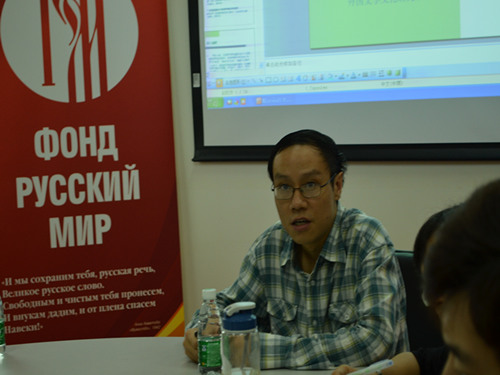 本网讯 11月21日下午两点,广外西语跨文化博士论坛2012年第二次圆桌研讨会在北校四教俄语中心举行。校文科基地道德研究与心理研究所所长,博士生导师杨韶刚教授及西语、高翻、英文、东语学院和外国文学与文化中心的老师和博士生共三十人参加了研讨会。