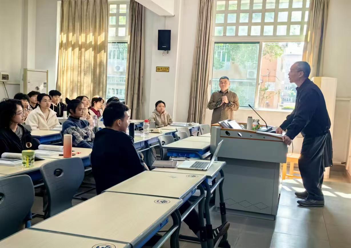 学院副院长陈星邀请年近70的大师兄大师姐们走进西班牙语课堂,与23级西班牙语的小师弟小师妹面对面。老少相对,课堂气氛热烈。校友们结合个人的人生经历,围绕外语人的使命、专业发展前景、跨文化交流的重要性、文学翻译的要点等与学生们畅谈交流,勉励大家既要扎实专业能力,又要有大局精神、奉献精神,勇于担当青年责任,服务社会,回报祖国,成为国家的栋梁之才。同学们对大师兄大师姐的分享报以热烈的掌声致敬。