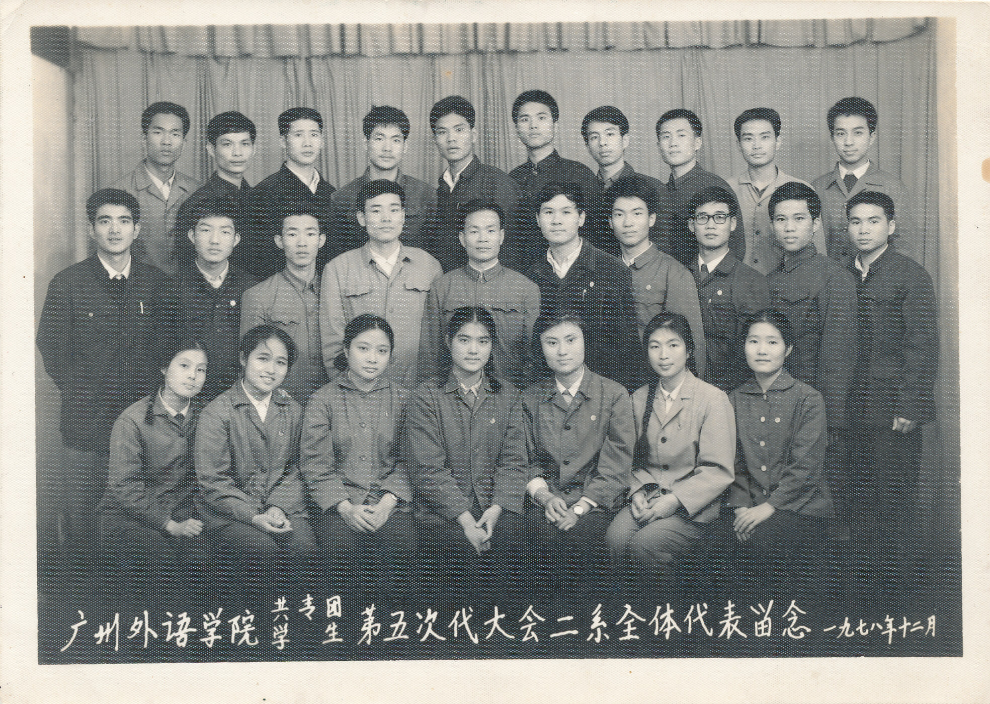 广外二系1978年12月参加学院共青团、学生第五次代表大会合影留念